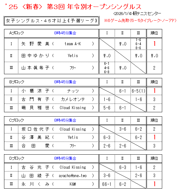 '25-<新春>第3回 年齢別オープンシングルス大会【結果】