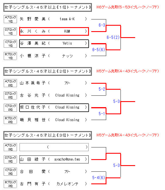 TOPへ   MENUへ   要項   男子S_40歳未満   男子S_40〜50歳   男子S_50歳以上   女子S_45歳未満   女子S_45歳以上