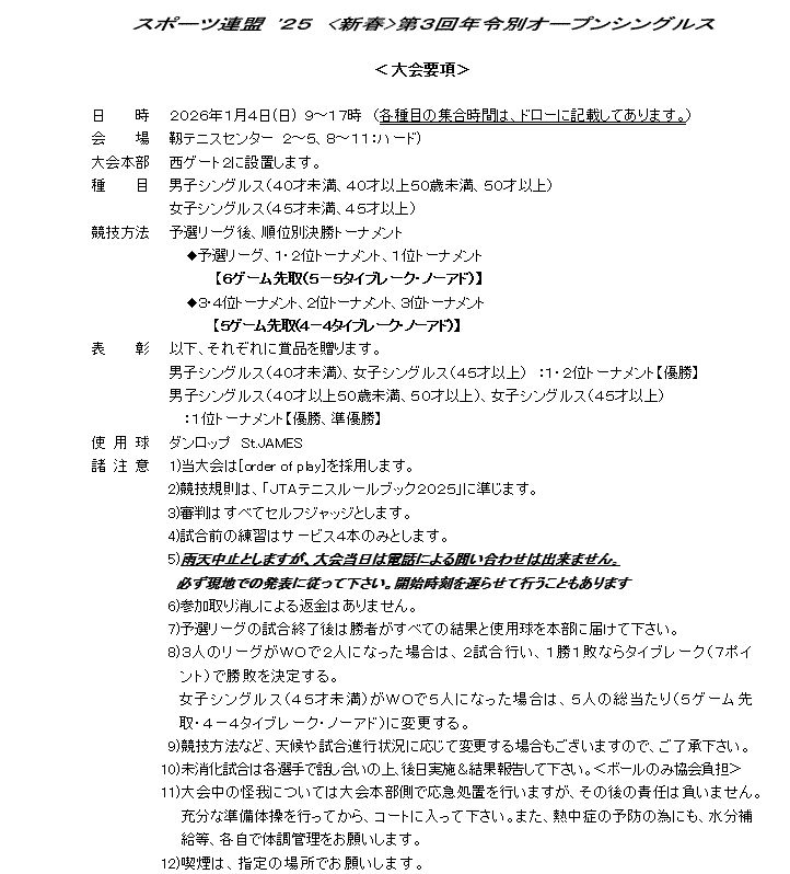 '25-<新春>第3回 年齢別オープンシングルス大会【結果】