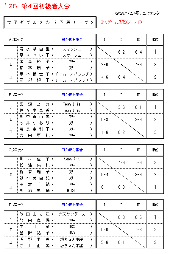 TOPへ   MENUへ   要項   男子S   男子W   女子S   女子W@   女子WA   混合W