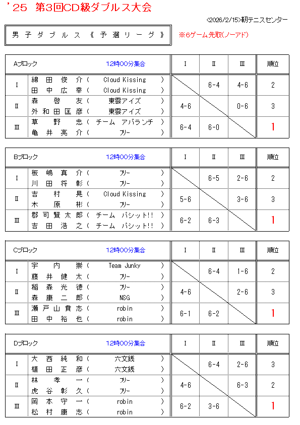 TOPへ   MENUへ   要項   男子W   女子W@   女子WA   女子WB
