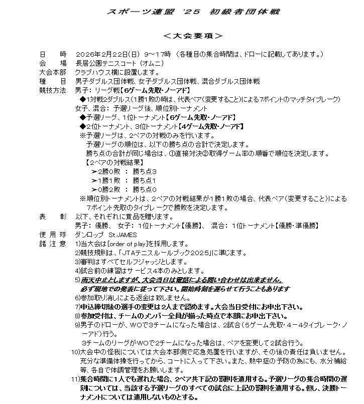 TOPへ   MENUへ   要項   男子W   女子W   混合W